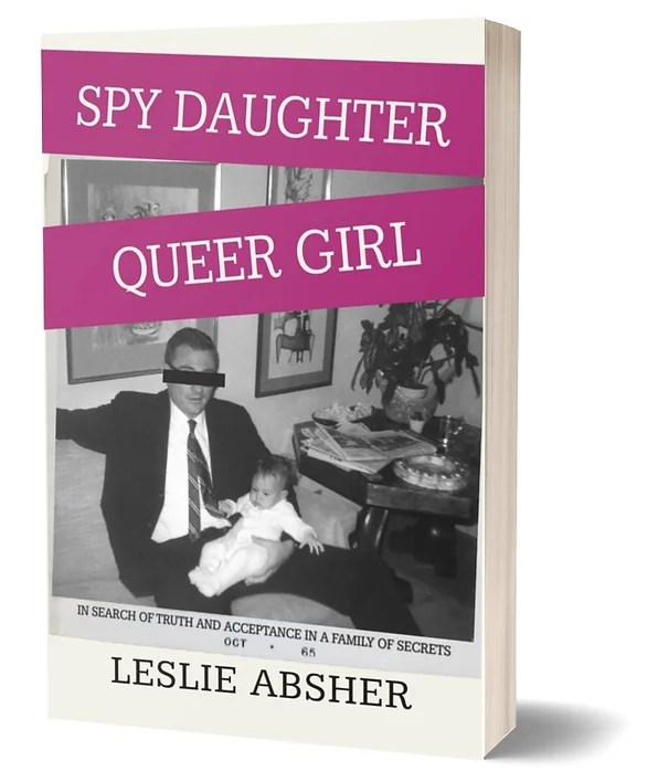 Leslie Absher’s intriguing memoir, Spy Daughter, Queer Girl, explores her relationship with her father and their struggle to accept each other. While he found Leslie’s lesbianism troubling, Leslie found his evasiveness about his secret life in the CIA deeply unsettling.